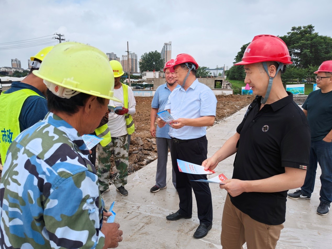 根據(jù)市安委會(huì)相關(guān)工作安排,2023年6月26日上午,集團(tuán)公司黨委副書記、副總經(jīng)理宋旭帶隊(duì)深入謝一礦和采煤沉陷區(qū)綜合治理項(xiàng)目現(xiàn)場開展安全隱患大排查,對(duì)于檢查中發(fā)現(xiàn)的問題,要求施工單位高度重視,盡快消除隱患,確保第22個(gè)安全月畫上圓滿的句號(hào)。宋旭一行還向施工人員發(fā)放了安全生產(chǎn)月宣傳手冊(cè),并向現(xiàn)場作業(yè)人員解釋了安全生產(chǎn)方面的問題。